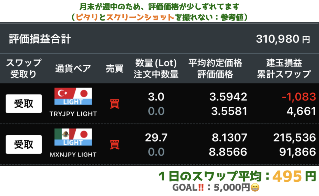 🇲🇽ペソ🇹🇷リラ全体の損益は+30.7万になりました