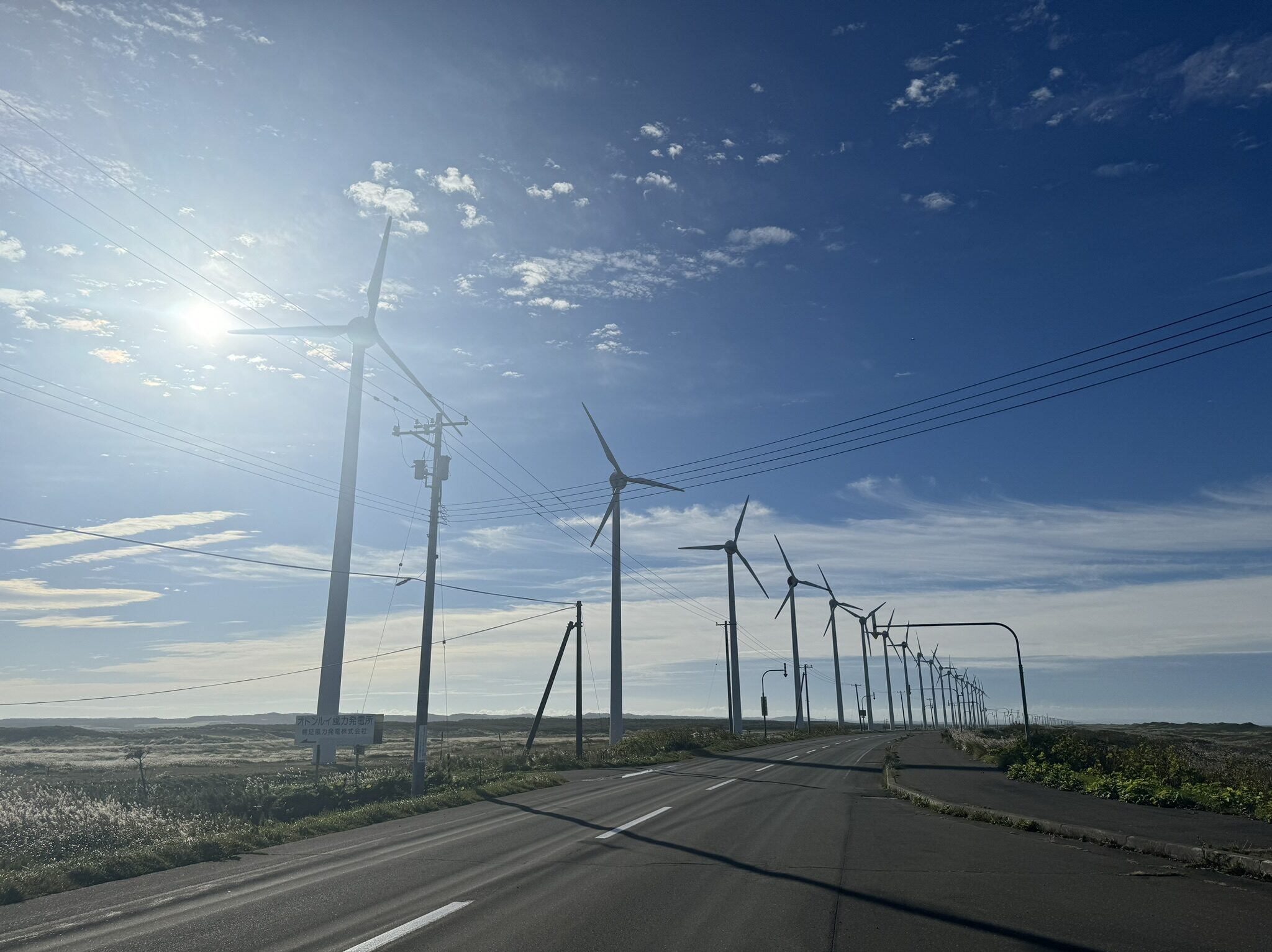 高さ100Mの巨大風車が3キロも連なった風景は”圧巻”です👍